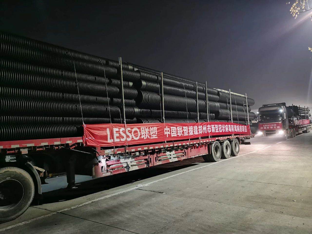 在得知鄭州將建河南版“小湯山”醫(yī)院的消息時(shí),中國聯(lián)塑第一時(shí)間積極響應(yīng),與相關(guān)單位對接,集團(tuán)下屬河南聯(lián)塑公司有關(guān)建設(shè)參與者取消休假、放棄與家人團(tuán)聚的機(jī)會,倉儲、物流調(diào)度、工廠排產(chǎn),技術(shù)人員等聯(lián)塑人聞?dòng)嵵鲃?dòng)應(yīng)戰(zhàn)就位。聯(lián)塑集團(tuán)快速調(diào)動(dòng)下屬河南公司資源,全力支援鄭州市新型冠狀病毒隔離病房的建設(shè),提供項(xiàng)目建設(shè)所需的全部給排水管道,包括PE給水管、HDPE雙壁波紋管、PVC-U管等,滿足醫(yī)院建設(shè)需求的給排水工程所有管材管件供應(yīng)。